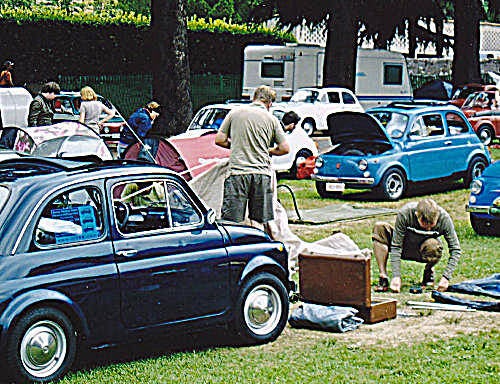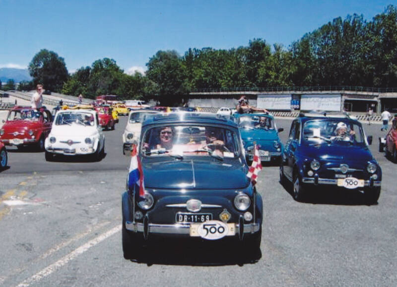 5 Juli vertrekken we weer onder politie begeleiding naar Corsa Traiano om daar te wachten op de nieuwe Fiat 500, die ons in groepen van 100 naar de Fiat-fabriek brengt.