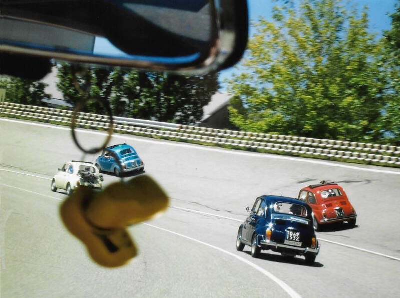 Super we mogen enkele rondes rijden op de testbaan en daarna de nieuwe Fiat 500 bewonderen.
